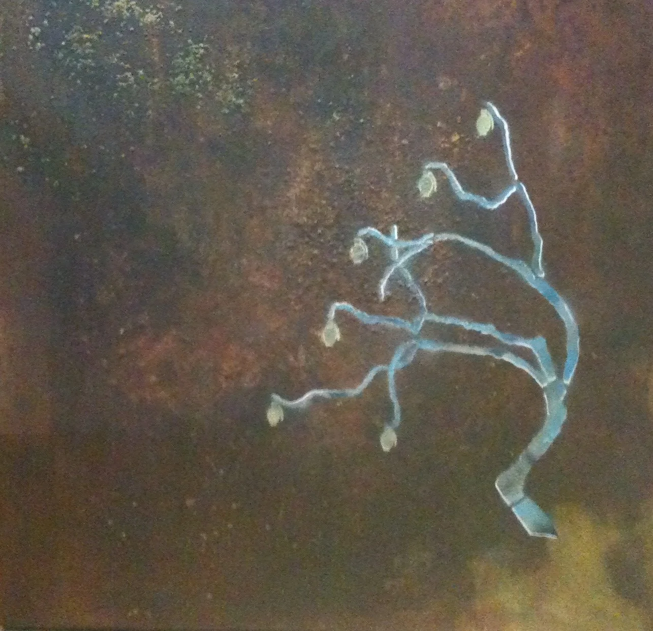 Wood panel/iron paint/coffee/rock salt: 48" x 48"